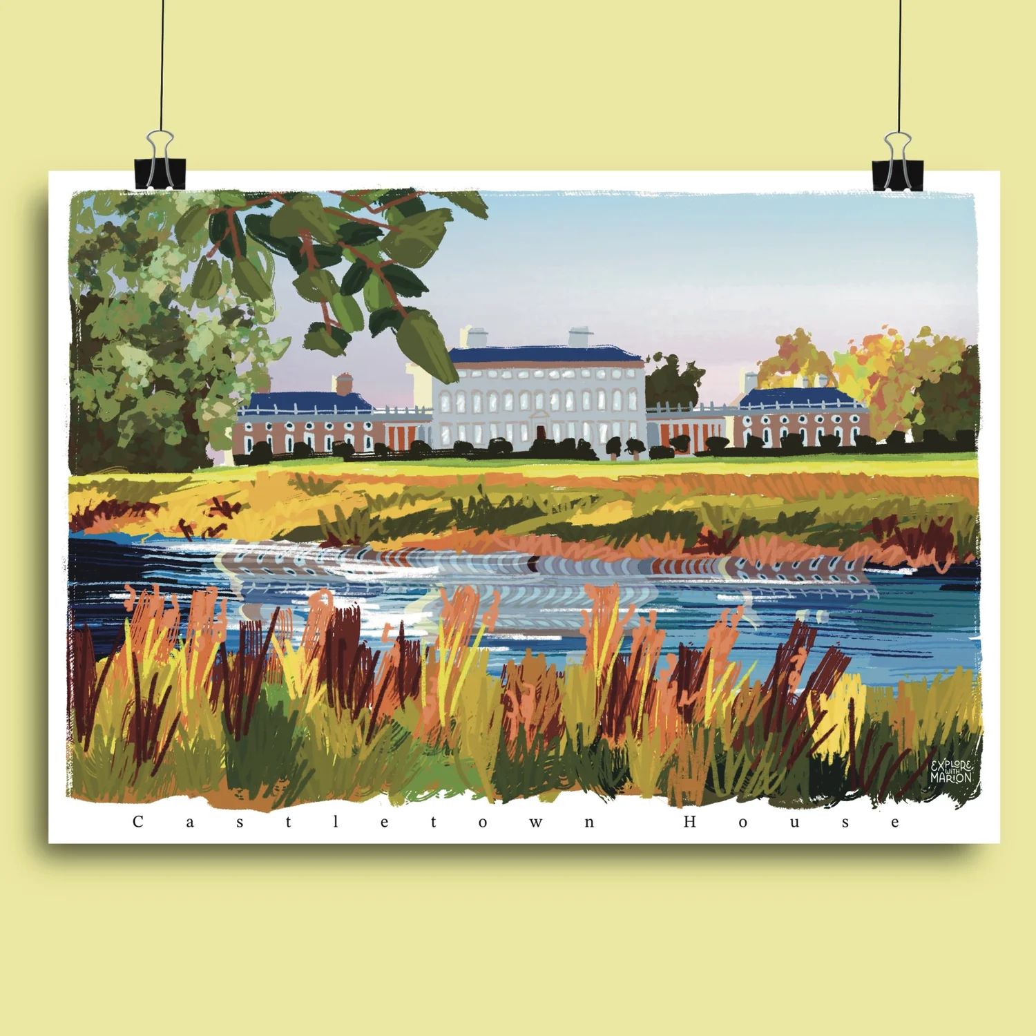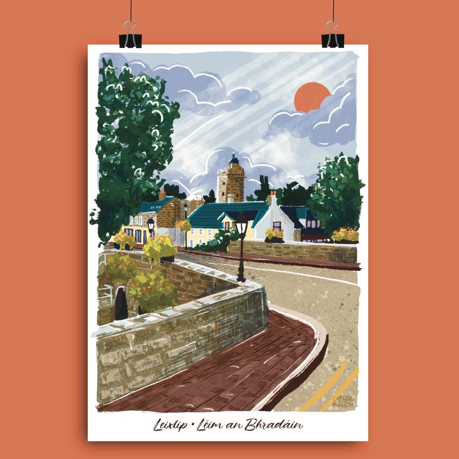 Based in Leixlip, Marion is the artist and illustrator behind Explore With Marion — a one-woman creative studio that turns everyday Irish scenes into art prints, travel posters, cards, stickers and keyrings. Originally from Brittany in France, she's been living in Ireland since 2017 and moved to Leixlip with her partner a few years ago, finding the town an immediate source of inspiration.